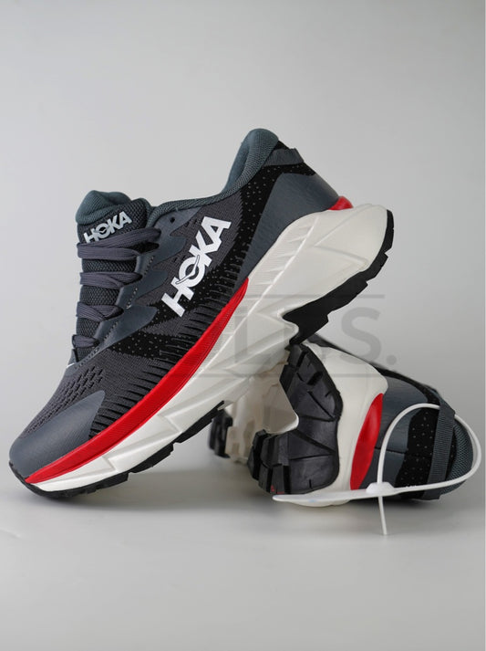 HOKA Grey Running Shoes with Red Stripe & White Sole (Sizes 41–45)